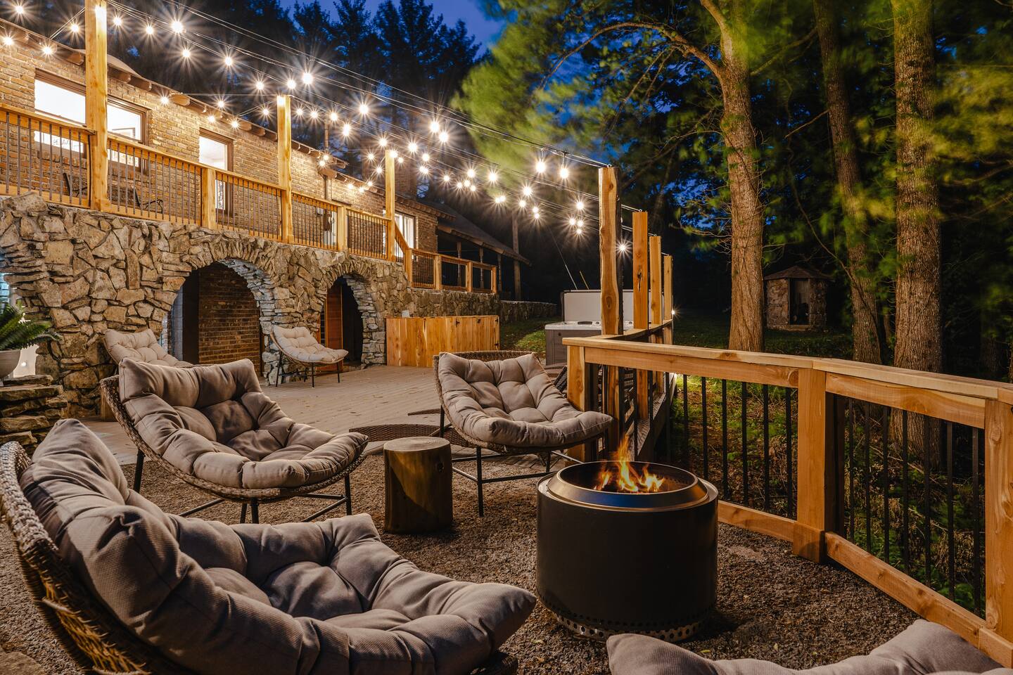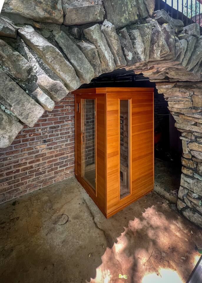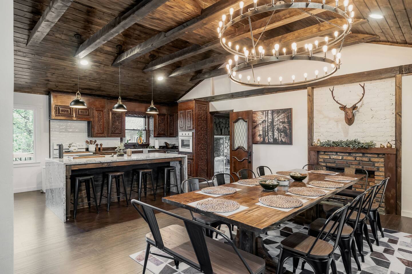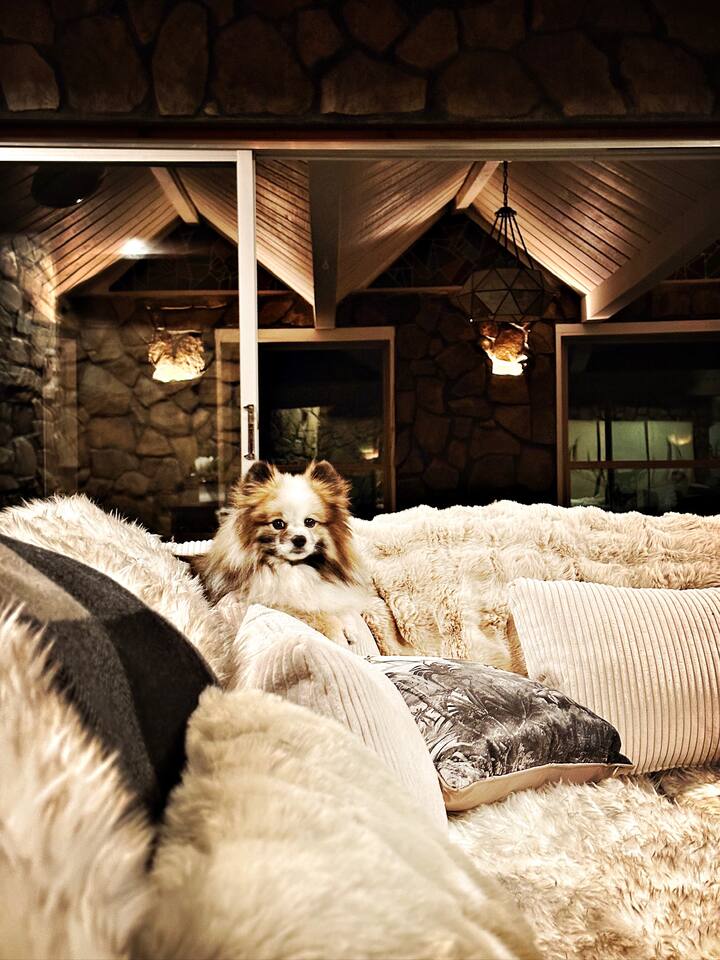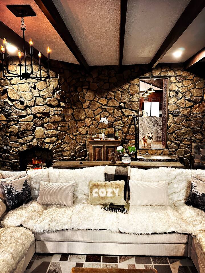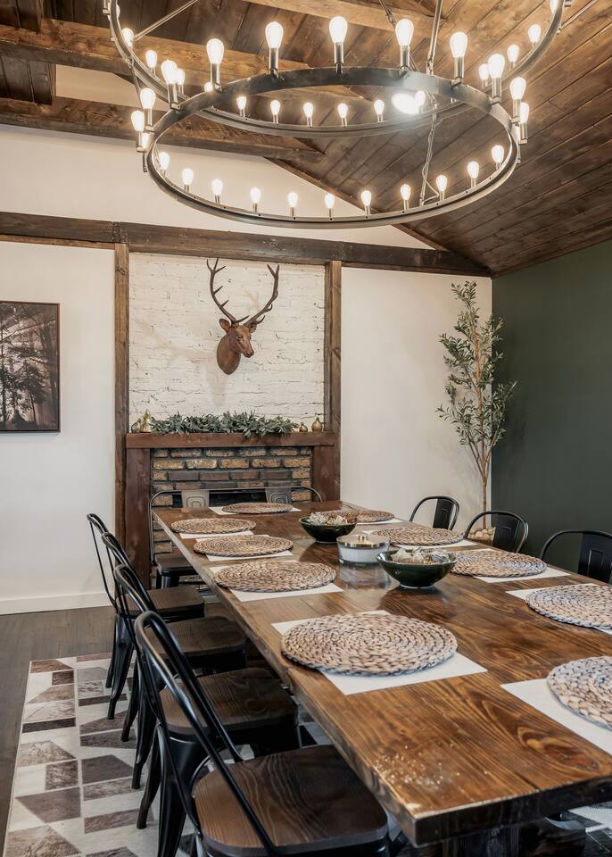 This 7 bedroom 4 bathroom with lower-level rec room is perfect for hosting any size group! The kitchen and lounge areas are a vintage, hip and cozy style!. The outdoor space is spacious and very unique featuring a hot tub, sauna , deck, fire pit, BBQ, and games.